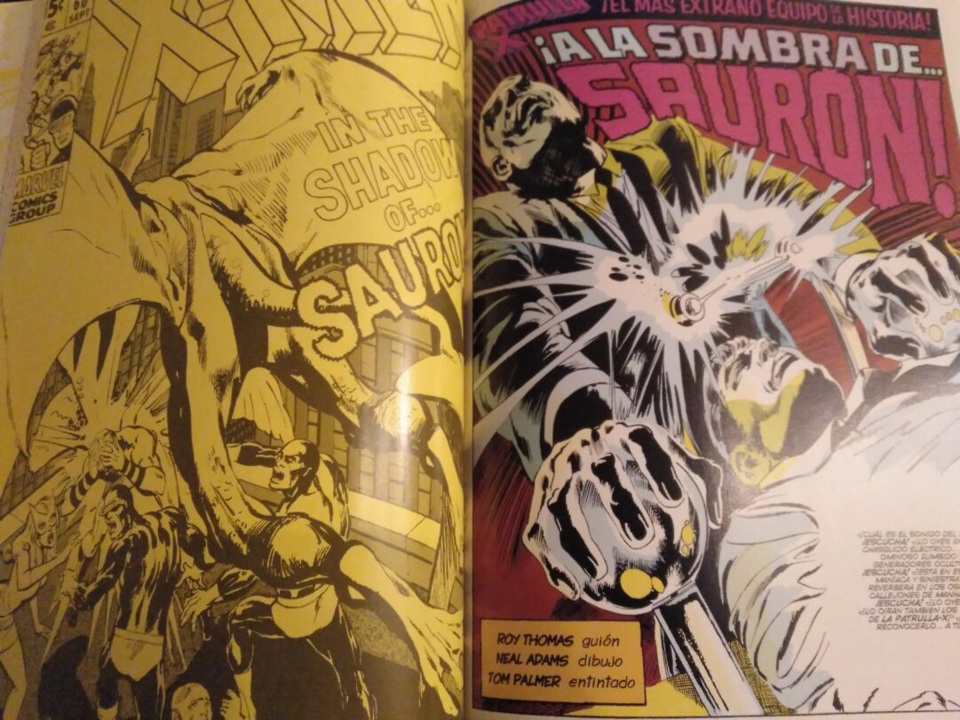 Roy Thomas era algo así como el chico para todo de Marvel, por entonces. Tomó el relevo de Stan Lee y creó un guión, a mi parecer, maravilloso.  Los personajes van saltando de peligro en peligro, de villano en villano, casi sin tiempo para respirar. Empezando en Egipto, donde comenzamos a descubrir a Alex Summers, el hermano de Cíclope, y su inmenso poder. Volvemos a encontrarnos con los temidos Centinelas (mis villanos favoritos de los X-Men, aterradores, gigantes, y tan clásicos como inmortales). Los homenajes de Roy Thomas suelen ser pequeñas delicias, y lo vemos con Saurón, o en Tierra Salvaje… Hay pequeñas maravillas a descubrir casi en cada página.