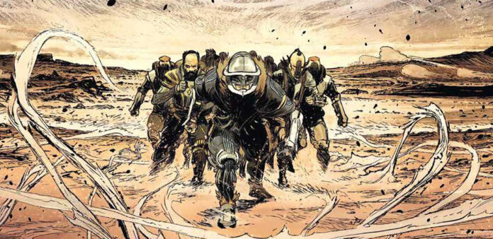 La horda de contraviento es un espectáculo. Como no tenía ni idea indagué de que iba esto, porque como se puede ver en el título nos indica ya que está basado en una novela de un tal Alain Damasio, que es un escritor de ciencia ficción francés. La obra no la conozco, por lo que no puedo decir si el cómic es una buena adaptación de la obra original o no. Simplemente yo me baso en la calidad del cómic, y esta está fuera de toda duda.