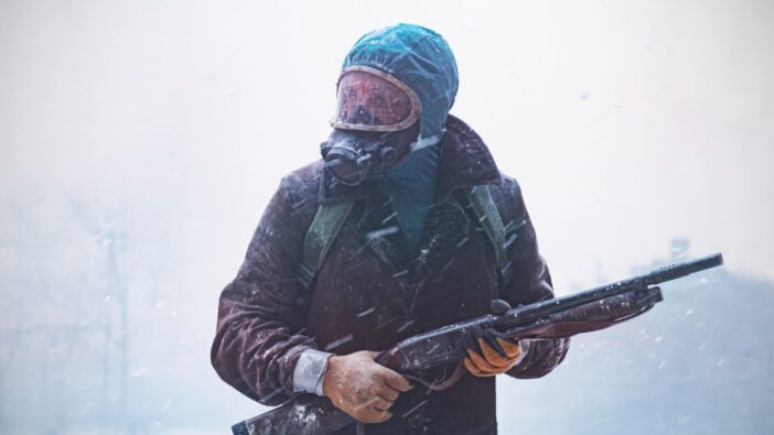 Pero sobre el final vemos el rostro de Ricardo Darín ensombrecerse hasta dejar iluminados solo los ojos en una imagen que, obviamente, remite a Juan Salvo y la famosa escafandra. E inmediatamente después, una impactante imagen lo muestra en soledad y caminando fusil en mano por una Buenos Aires asolada por la nevada mortal.