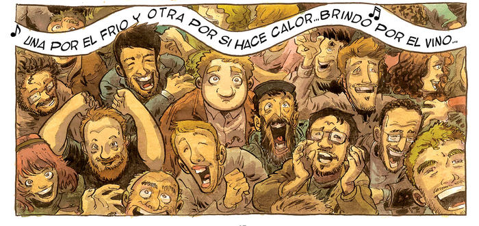 Realmente sorprende su calidad. Las páginas parecen tener un valor incalculable una vez las tienes delante. Todo luce increíblemente casero, quizá porque en alguna que otra ocasión hemos podido contemplar cómo se gestaba, a través de los diversos directos que su autor realizaba mientras lo pintaba. Pero también puede ser por la acuarela, una técnica que desde luego no es la más sencilla de utilizar a la hora de realizar un cómic entero, porque como ya se ha dicho, este cómic es plenamente suyo. Desde los dibujos, los colores, los diseños de personajes y la historia. Todo ha salida de la cabeza peluda del catalán. La editorial únicamente ha tenido que imprimir y distribuir (lo cual les ha debido costar mucho porque desde luego el precio de 14’90€ luce bastante elevado para las 56 páginas que lo componen).