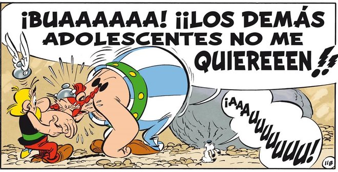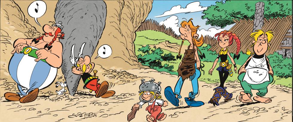 Es inevitable que siempre que se lanza un nuevo álbum de Astérix nos llegue información previa desde los medios más dispares. Esta vez no ha sido una excepción. De La hija de Vercingétorix he llegado a leer todo tipo de comentarios antes de su lanzamiento, desde que la protagonista era un trasunto de la activista Greta Thunberg hasta que la historia se relacionaba directamente con el movimiento #MeToo. Tampoco sería nada descabellado porque si algo ha caracterizado siempre la serie, desde la época de René Goscinny, es su capacidad para tratar temas de actualidad en clave de humor. Sin embargo, aunque el personaje de Adrenalina es una adolescente de fuerte carácter y puede recordarnos a la adolescente sueca que batalla contra el cambio climático, lo que hacen Ferri y Conrad es retratar el conflicto generacional de nuestros tiempos. No es un tema nuevo en Astérix. Sus creadores ya lo hicieron en Astérix y los Normandos pero es evidente que el conflicto generacional a finales de los 60 no es el mismo que se da ahora y que había que actualizarlo. Adrenalina es alguien que busca su lugar en el mundo al tiempo que, junto al resto de adolescentes de la aldea (los hijos del pescadero Ordenalfabétix y el herrero Esautomátix) se plantea cuestiones ecologistas como la extinción de los jabalíes y el consumismo excesivo (de ánforas de vino que luego acaban en el mar; no preguntéis). Los jóvenes se reúnen en la cantera de Obélix para hablar de sus cosas al igual que las amigas de mi hija se reúnen en la plaza del barrio para hacerse selfies. Los padres, que siempre quieren (queremos) lo mejor para nuestros hijos, no acaban de entender que no quieran seguir sus pasos, olvidando que lo que fue bueno para ellos quizás no lo sea para sus retoños.